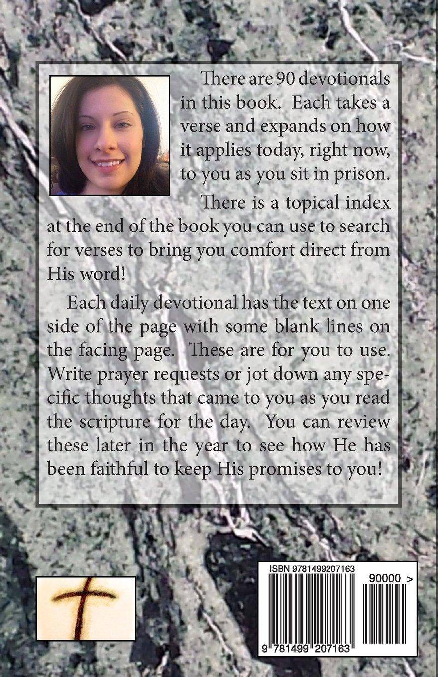 There are 90 devotionals in this book. Each takes a verse and expands on how it applies today, right now, to you as you sit in prison. There is a topical index at the end of the book you can use to search for verses to bring you comfort direct from His word! Each daily devotional has the text on one side of the page with some blank lines on the facing page. These are for you to use. Write prayer requests or jot down any specific thoughts that came to you as you read the scripture for the day. You can review these later in the year to see how He has been faithful to keep His promises to you!