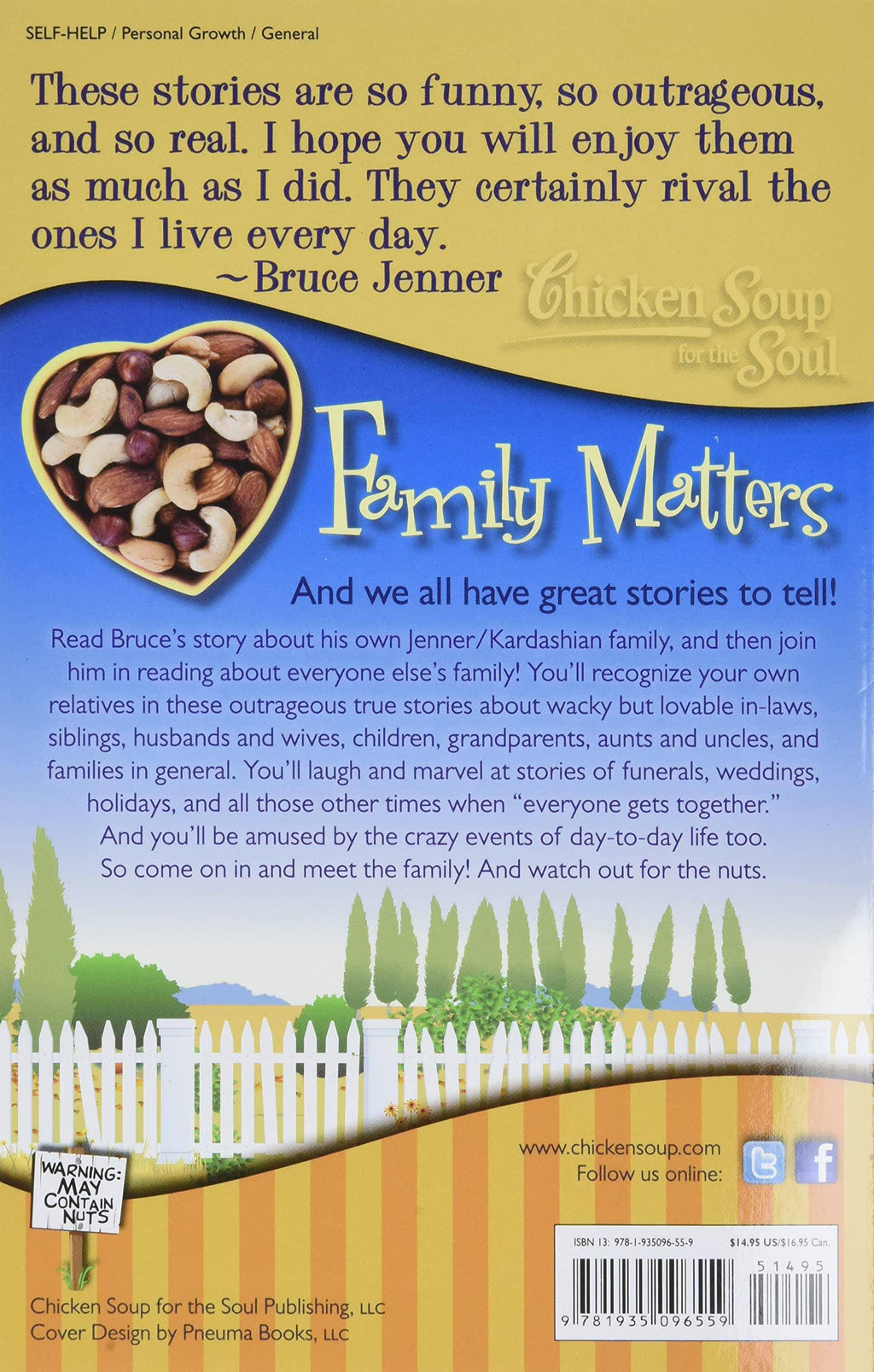 Nearly everyone thinks their own family is “nutty" or at least has one or two nuts. With 101 stories of wacky yet lovable relatives, funny foibles, and holiday meltdowns, Chicken Soup for the Soul: Family Matters is often hilarious and occasionally poignant.
