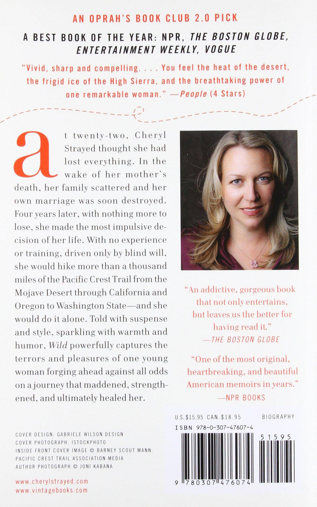 Annotation: In the wake of her mother's death, with her family scattered, and in the ashes of a failed marriage, Cheryl Strayed made the impulsive decision to hike the Pacific Crest Trail. Wild powerfully tells the story of her adventure, capturing the terrors and pleasures of a young woman forging ahead against all odds and the healing power of her trip.